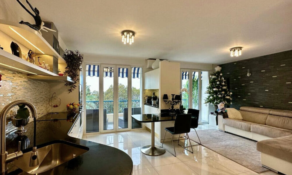 Experience coastal elegance in this 2-room apartment located in Beausoleil, featuring a harmonious blend of stylish design, a private terrace, and captivating sea views. With a black and white interior theme, this residence offers a modern aesthetic that sets the stage for a sophisticated living experience.