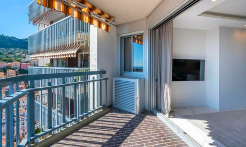 Cet appartement magnifiquement rénové offre un agencement raffiné et une vue panoramique imprenable sur Monaco, la mer Méditerranée et le Rocher.
